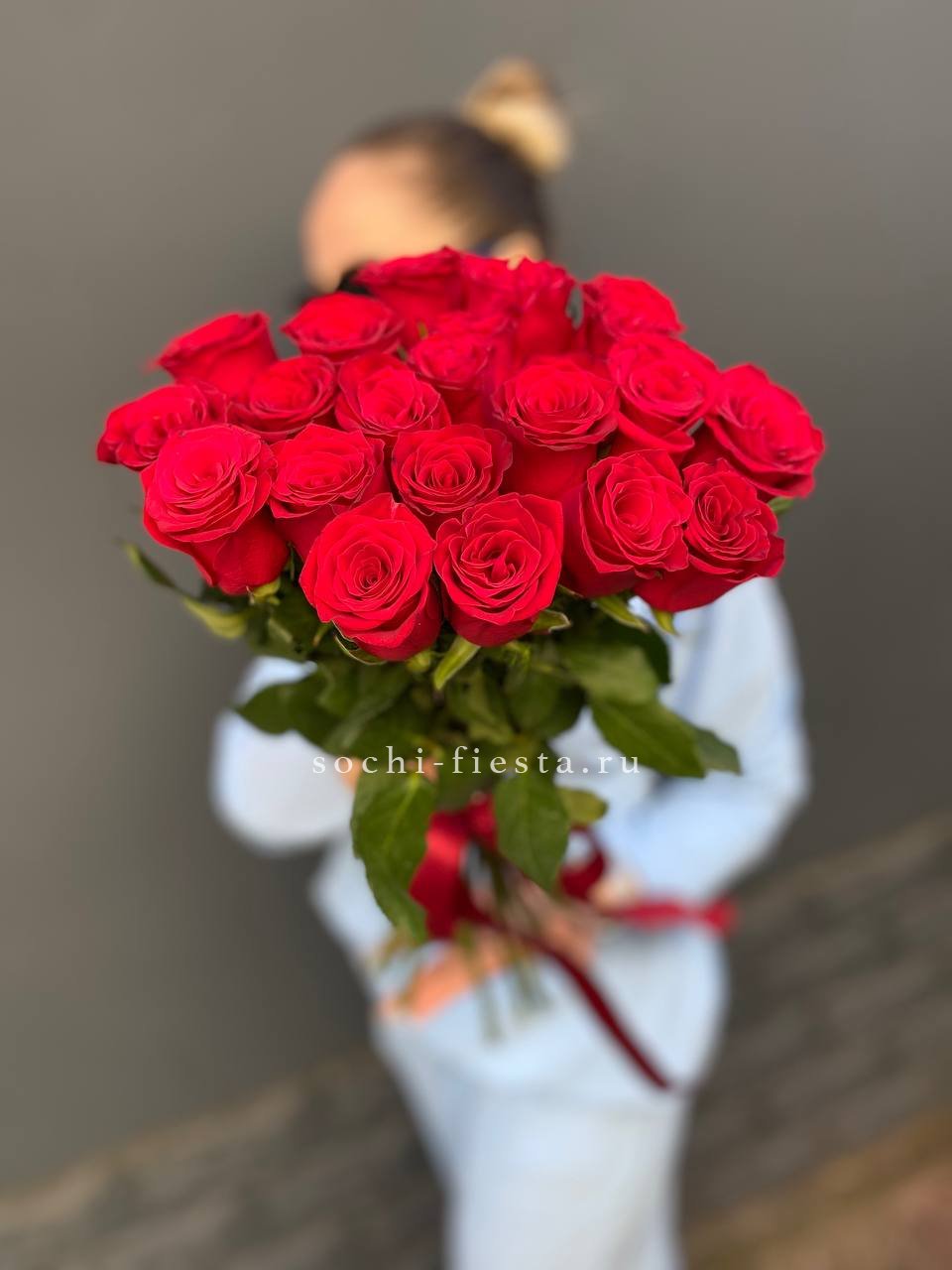15 роз сорта джумилия, лента, дизайнерская упаковка.