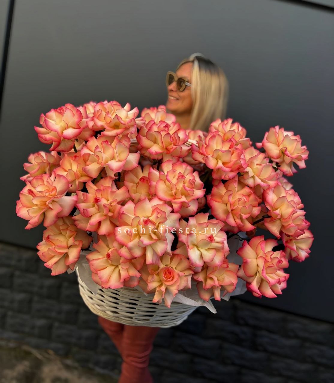 Французские вывернутые розы 45 шт., корзина.