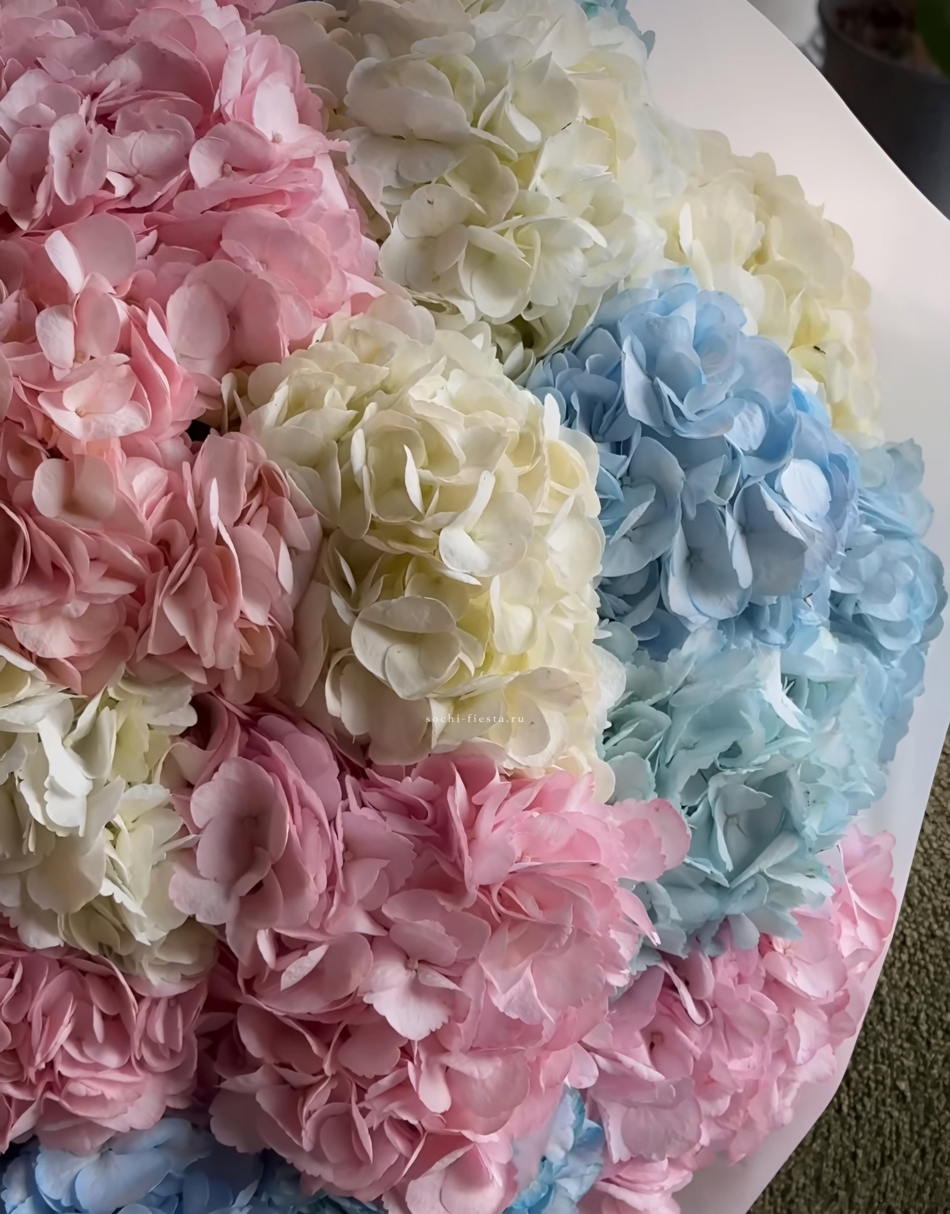 Белоснежное соцветие гортензии с плотной структурой и чистым тоном. Универсальный вариант для минималистичных интерьеров и спокойных решений.