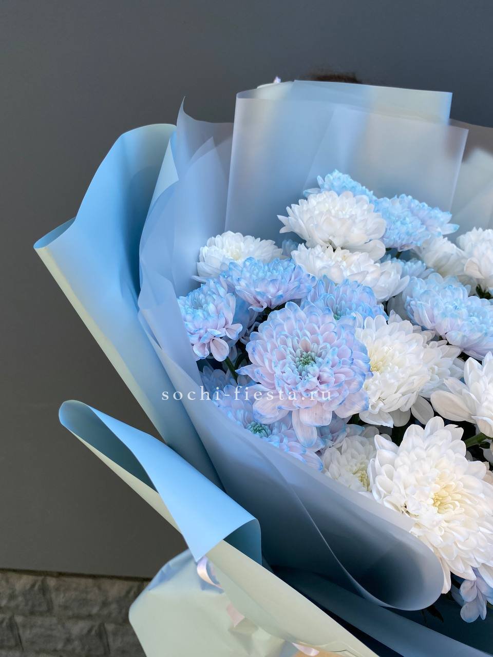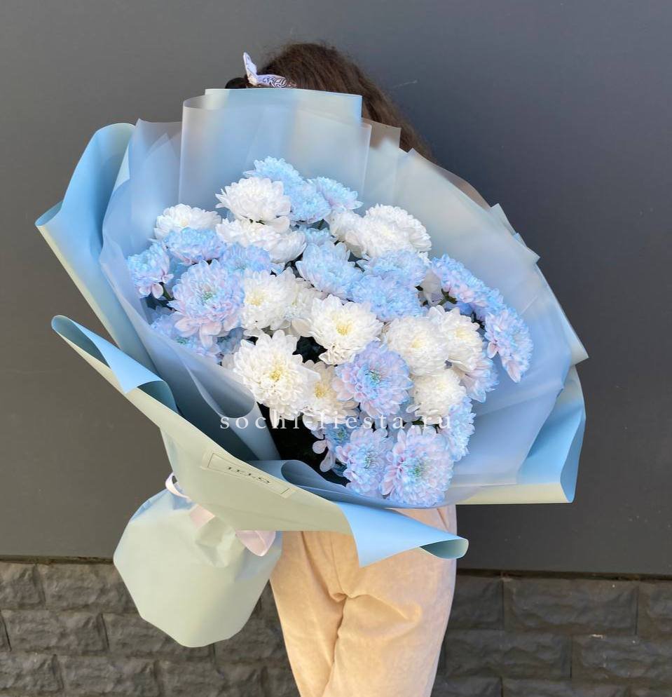 Букет нежно-голубых хризантем