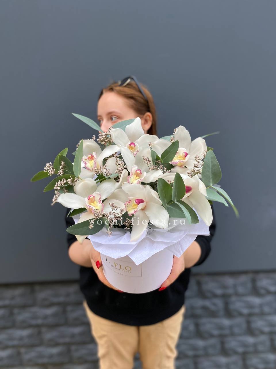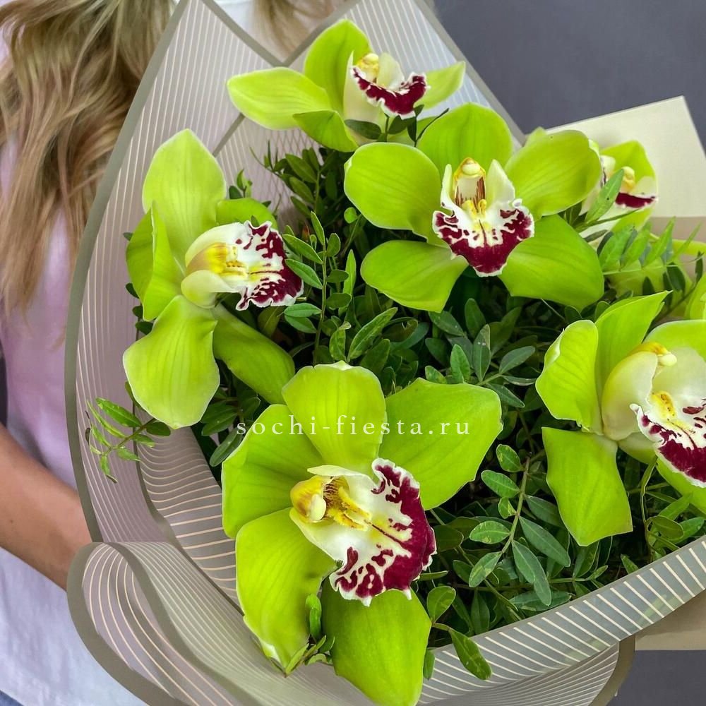 орхидея цимбидиум - 7 шт., декоративная зелень, упаковка на выбор.