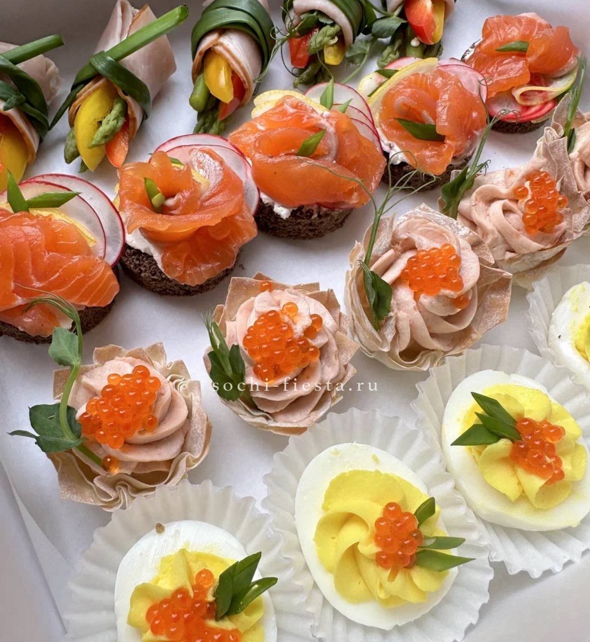 греческая- 3 шт. С рукколой и креветками- 3 шт. С имбирным тунцом- 3 шт. С перцем и зеленью- 3шт. С морепродуктами и чукой- 3 шт.