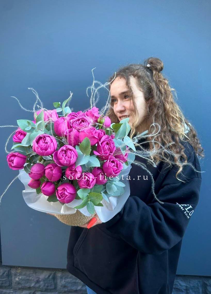 Для заказа товара "Пионовидные розы в джутовом кашпо " с доставкой в Туле нажмите в корзину