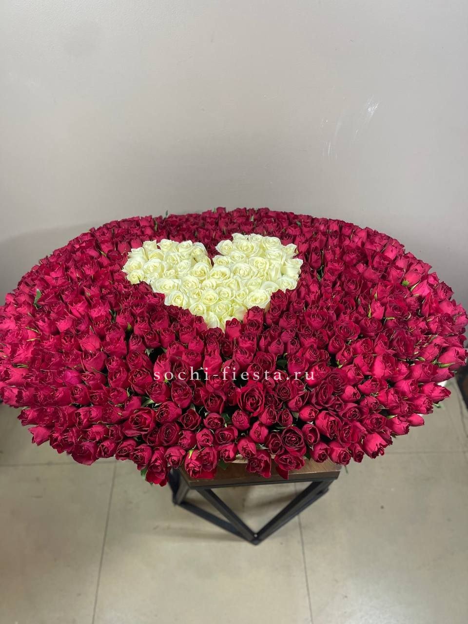 Триста пятьдесят одна роза выстраивается в живое послание из алых и белоснежных бутонов. Каждый цветок здесь часть признания, которое невозможно произнести вслух.
