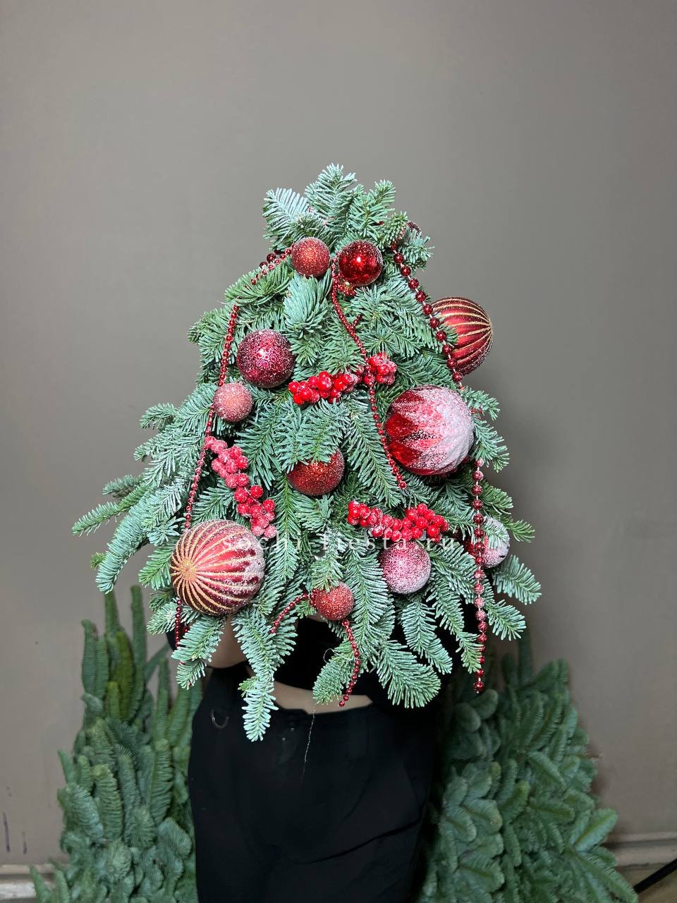 ёлочка с красными игрушками. Композиция может иметь изменения не значительные!Украшается только перед ёлочки)