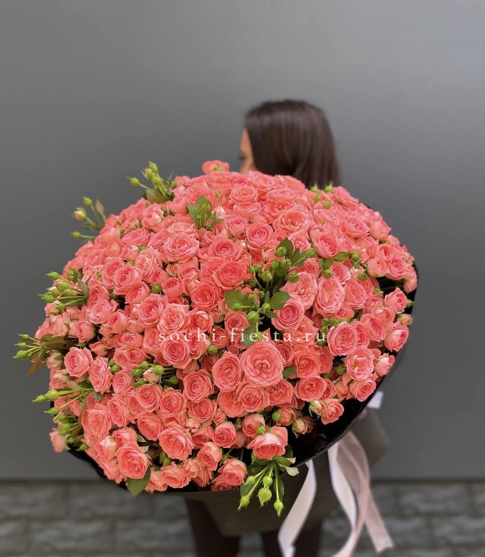 Розы Karolina раскрываются плавными переходами нежно-розовых оттенков. Сто один бутон выстраивается в плотную композицию с мягким цветовым звучанием.