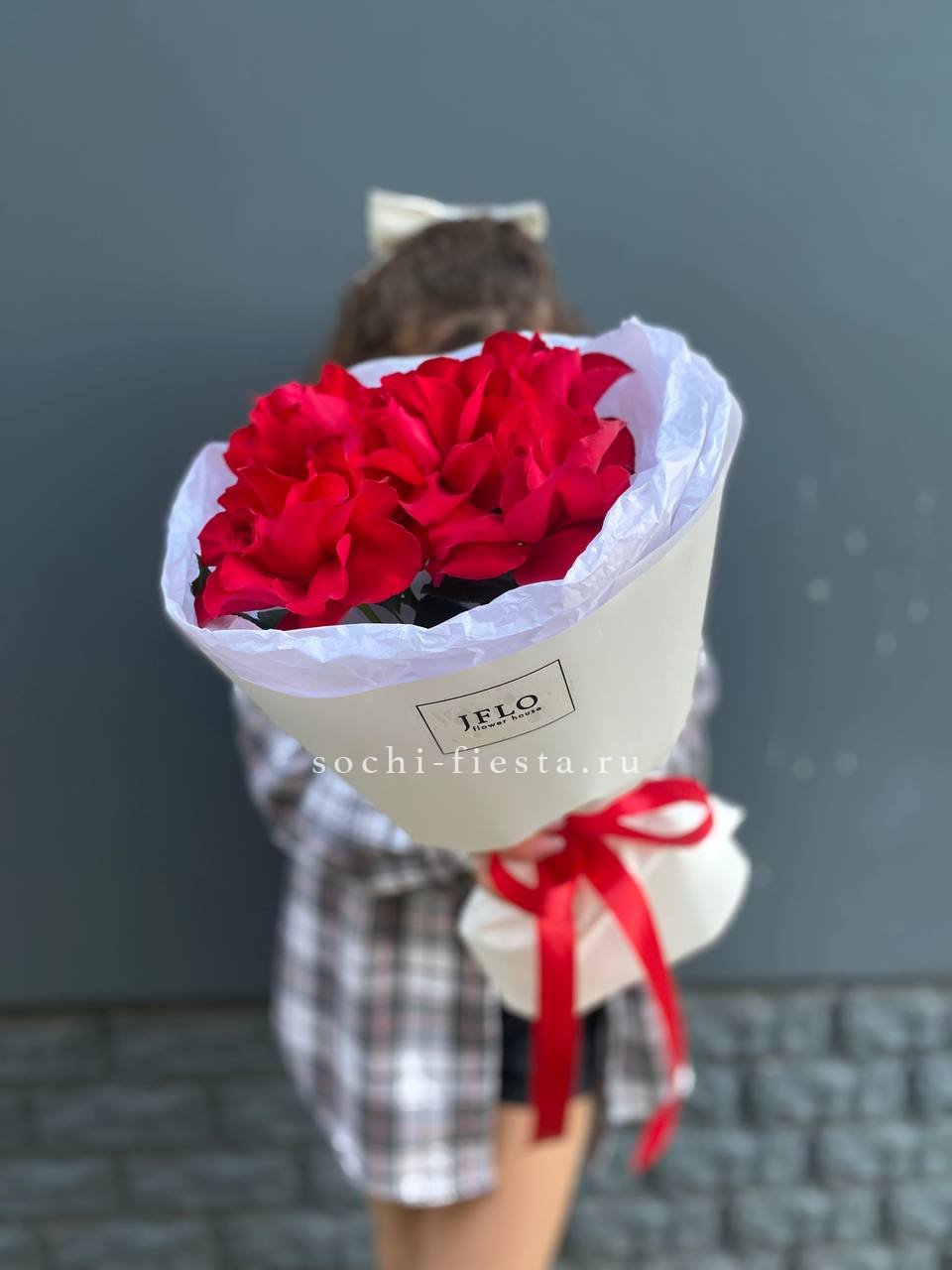 51 красная роза, лента, черный фоамиран или дизайнерская пленка.