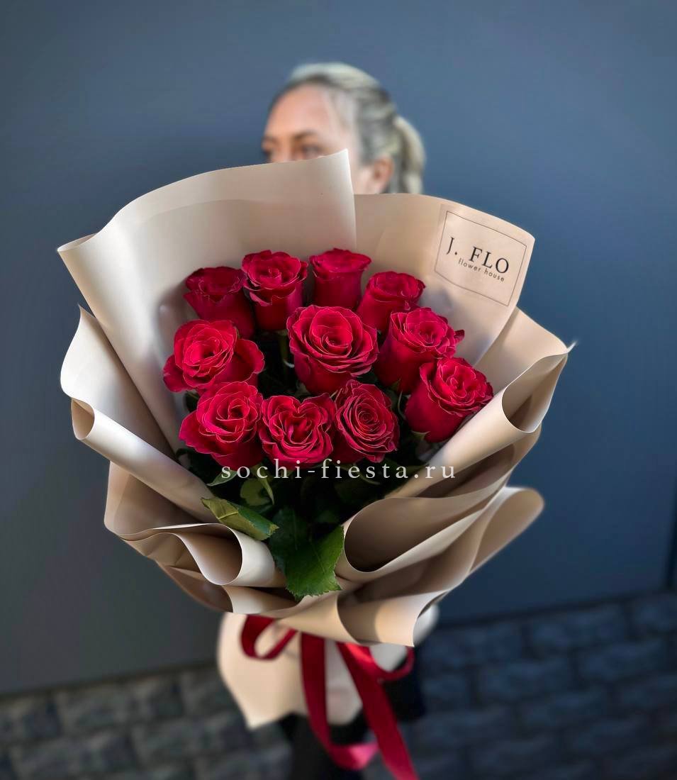 29 красных роз 70 см., лента, крафт или дизайнерская пленка.