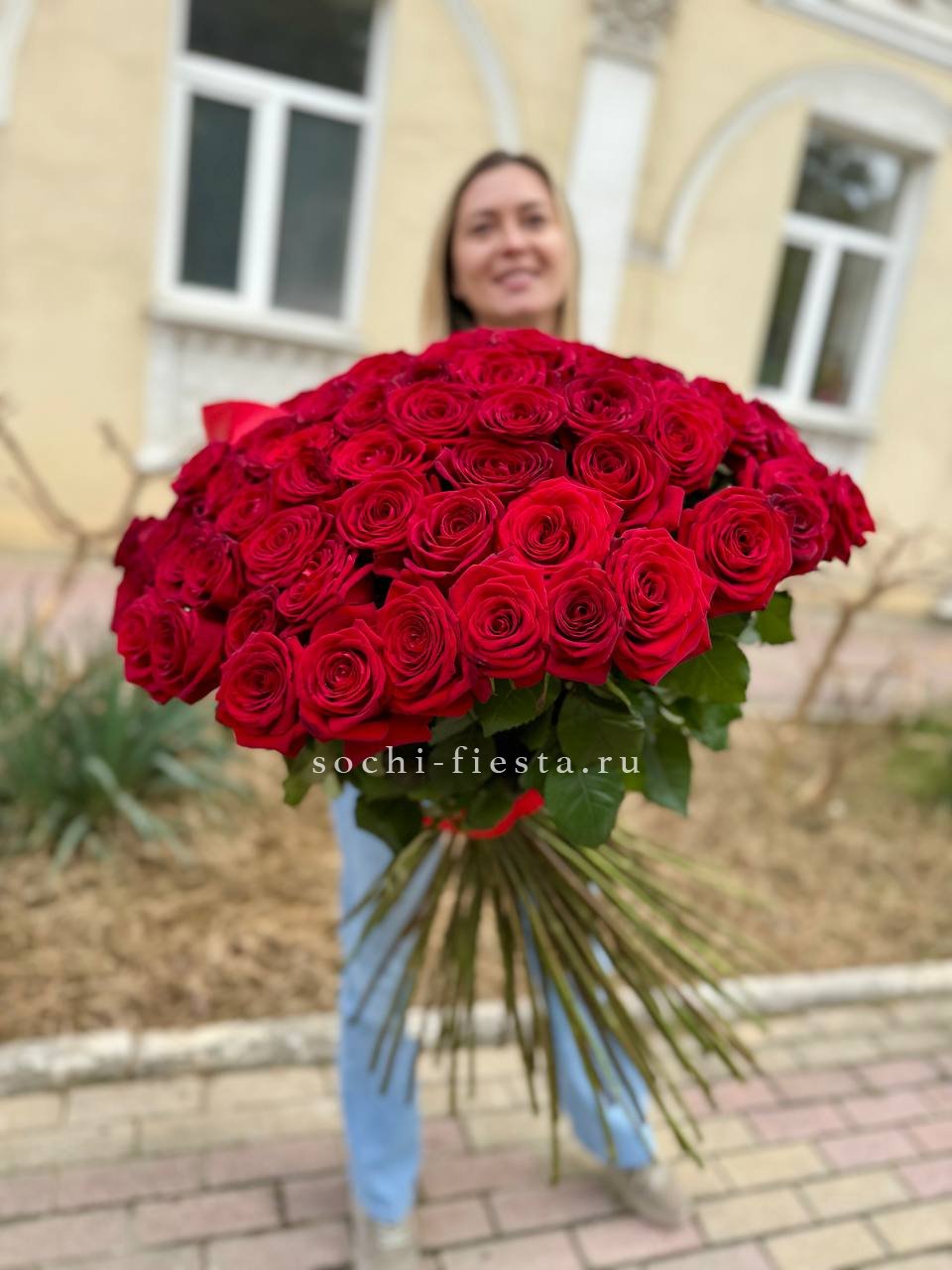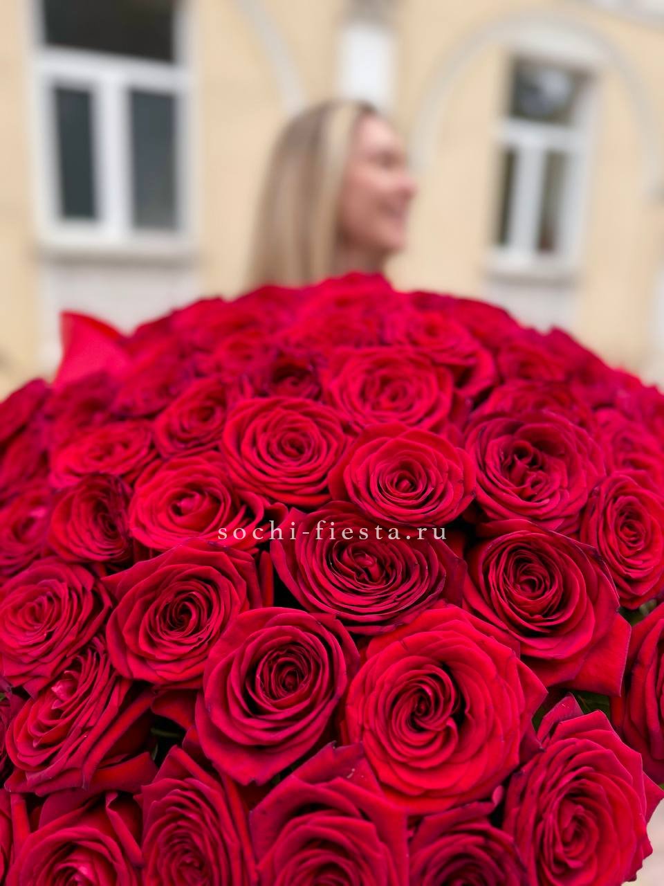 Сто одна голландская роза сортов Фридом или Эксплорер впечатляет длиной стеблей и крупными бутонами. Глубокий винный оттенок и безупречная геометрия каждого цветка. Масштаб, который чувствуется.